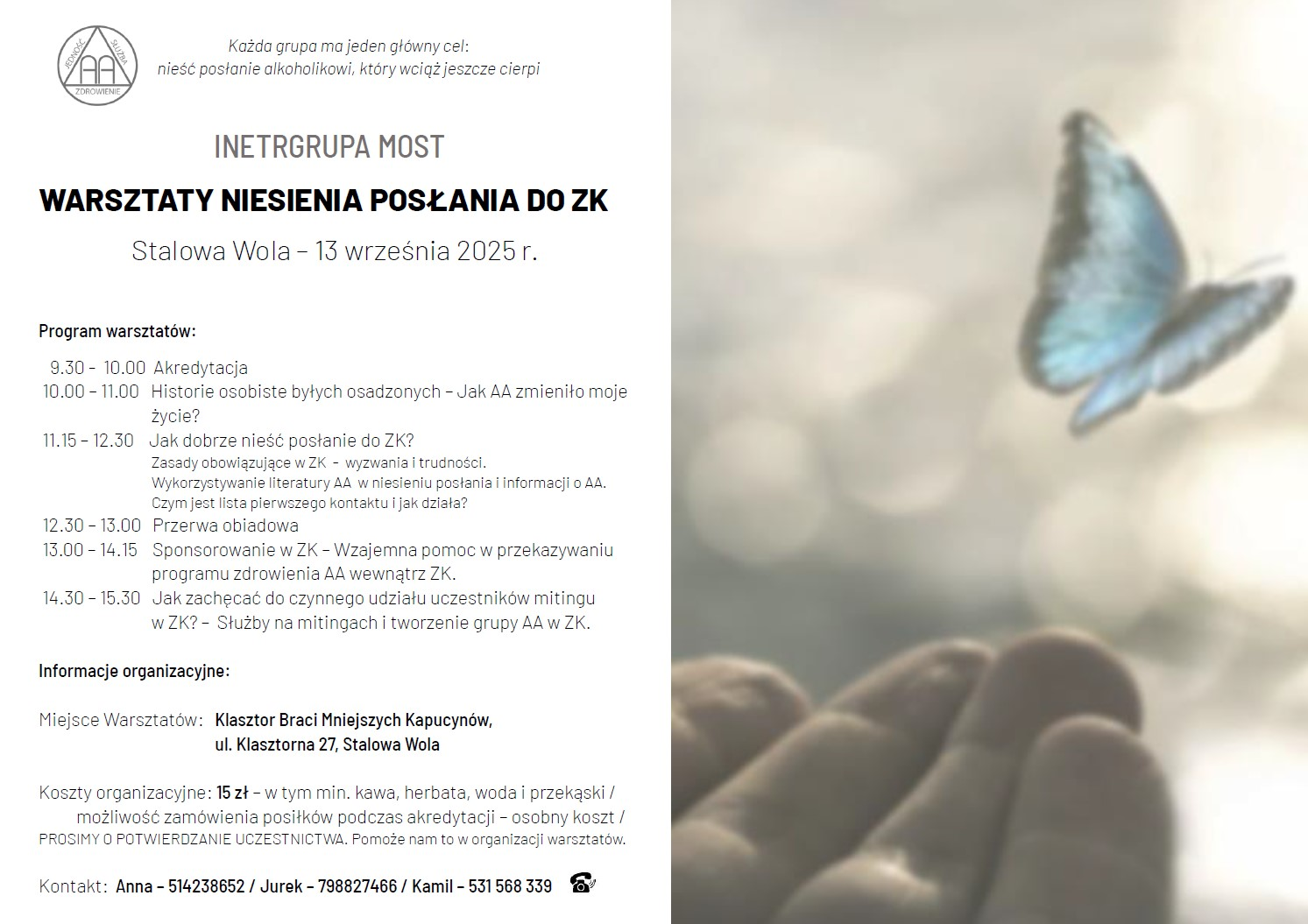 INTERGRUPA „MOST” ZAPRASZA SERDECZNIE NA WARSZTATY NIESIENIA POSŁANIA DO ZAKŁADÓW KARNYCH, KTÓRE ODBĘDĄ SIĘ 13 WRZEŚNIA W STALOWEJ WOLI.